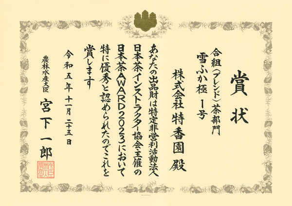 第9回「日本茶AWARD2023」第1位優勝 日本茶大賞 受賞