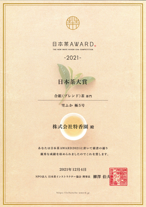 第7回「日本茶AWARD2021」第1位優勝 日本茶大賞 受賞